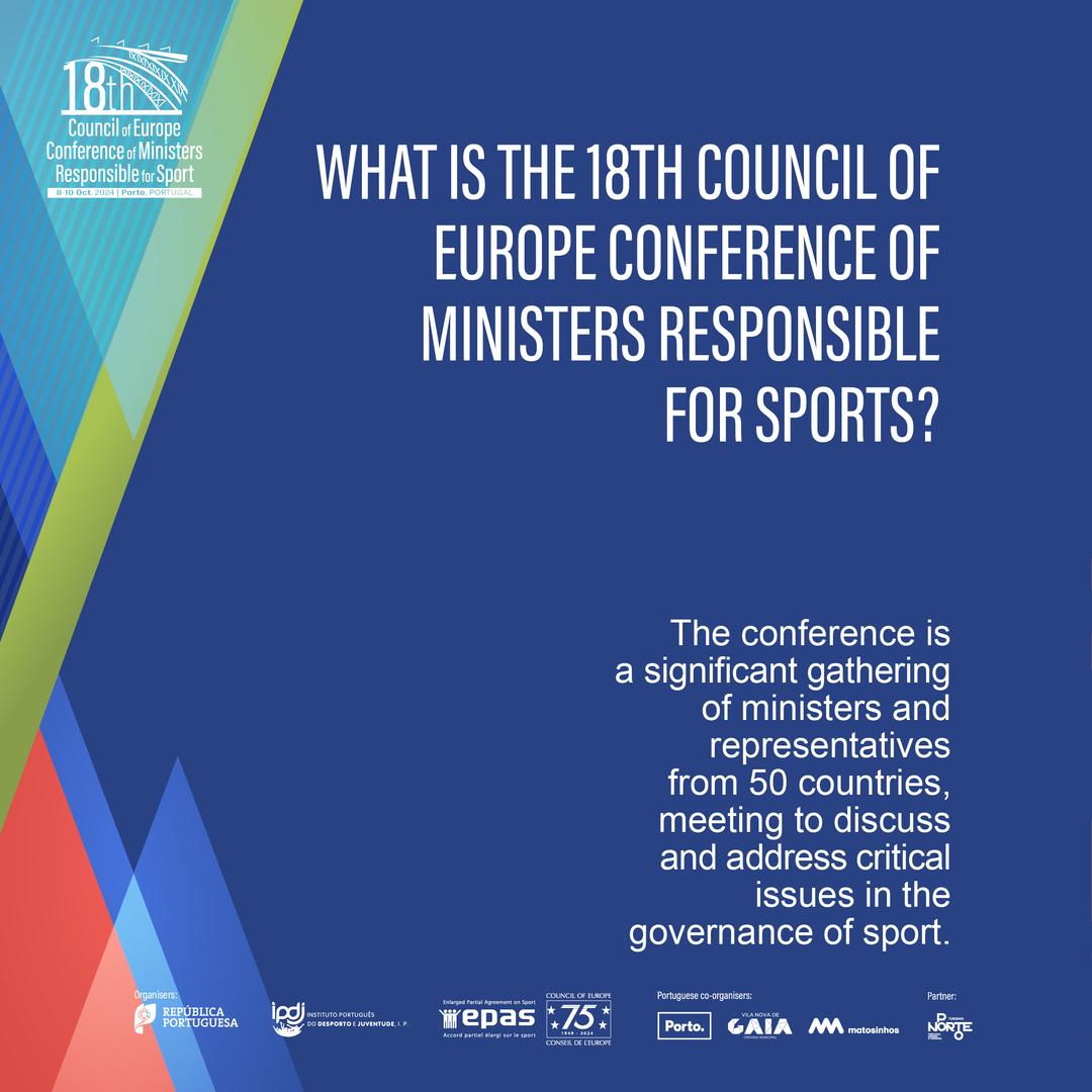Organizada pelo Conselho da Europa – através do Acordo Parcial Alargado sobre o Desporto do Conselho da Europa (EPAS – Enlarged Partial Agreement on Sport) –, e pelo Governo Português, a 18.ª edição do evento reunirá ministros de 50 países, membros do Conselho da Europa, ou membros da EPAS e/ou dos estados que integram a Convenção Cultural Europeia.