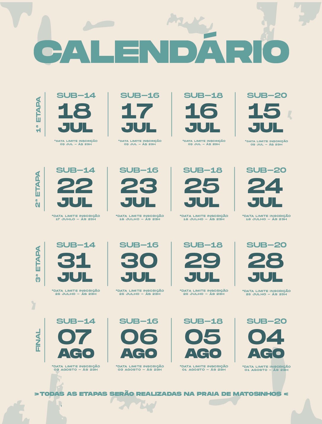 📍 Todas as etapas vão acontecer na Praia de Matosinhos, de manhã.