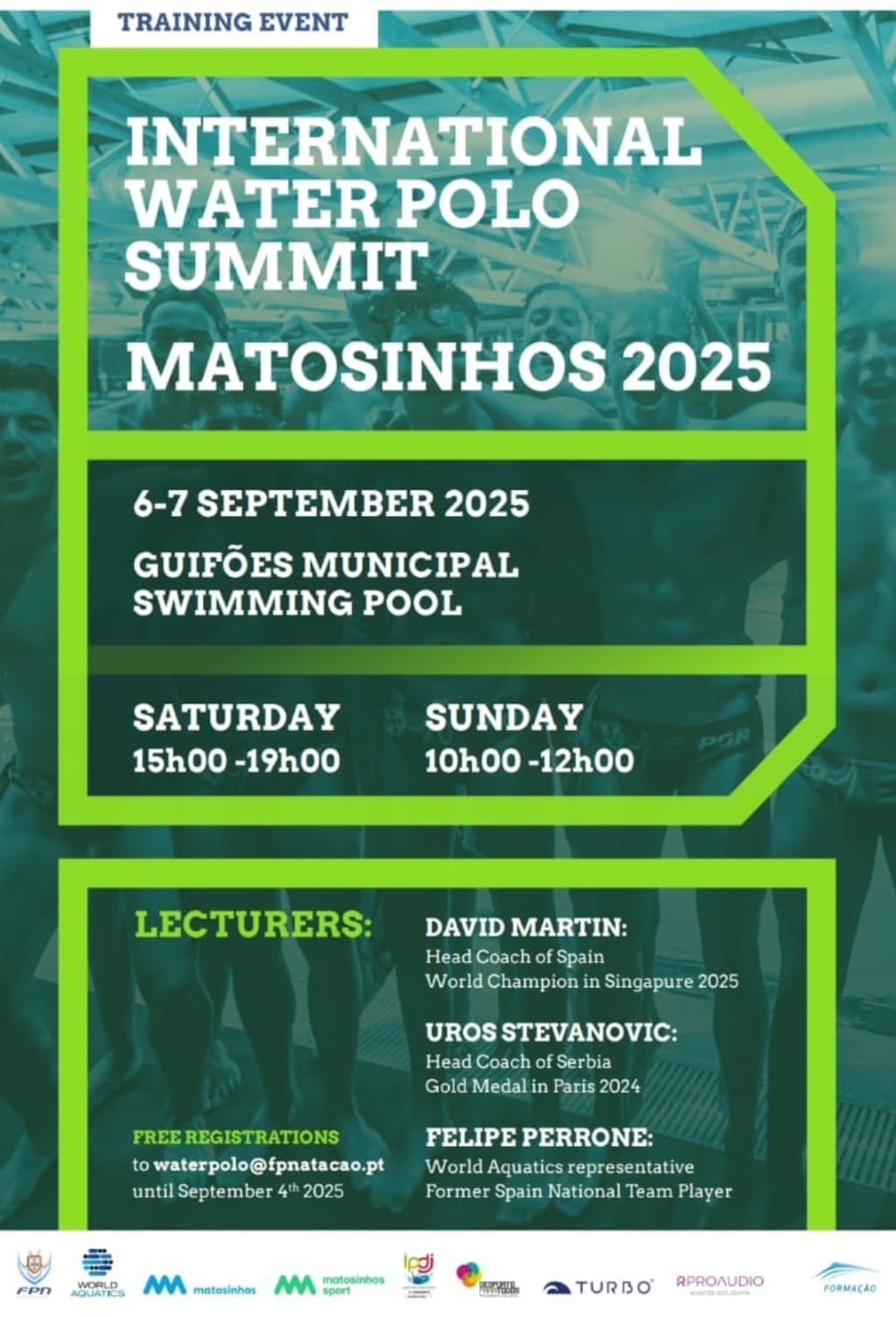 Estas jornadas são destinadas a técnicos, sendo que a inscrição, apesar de gratuita e sujeita a disponibilidade de vagas, deve ser realizada através de envio de email para waterpolo@fpnatacao.pt