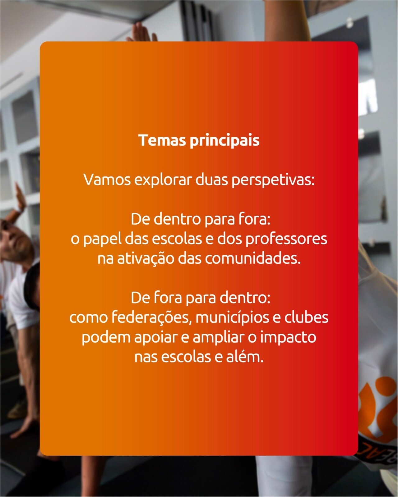 Um encontro para debater ideias, ouvir especialistas e inspirar novas formas de tornar o desporto mais acessível sobe o mote “Aproximar Escolas e Clubes: Parcerias para o Desporto, Atividade Física e Saúde”.