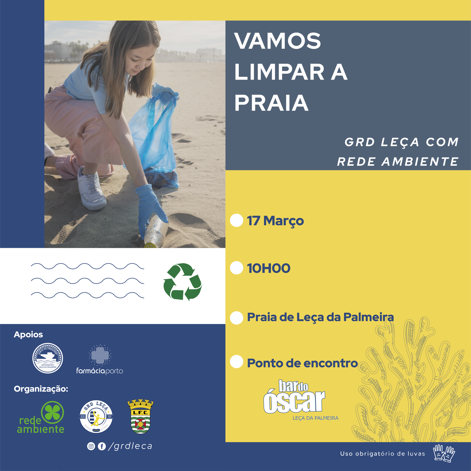 O convite destina-se a toda a comunidade para se juntar, no dia 17 de março às 10h00 no Bar do Óscar, na recolha de lixo na Praia de Leça da Palmeira.