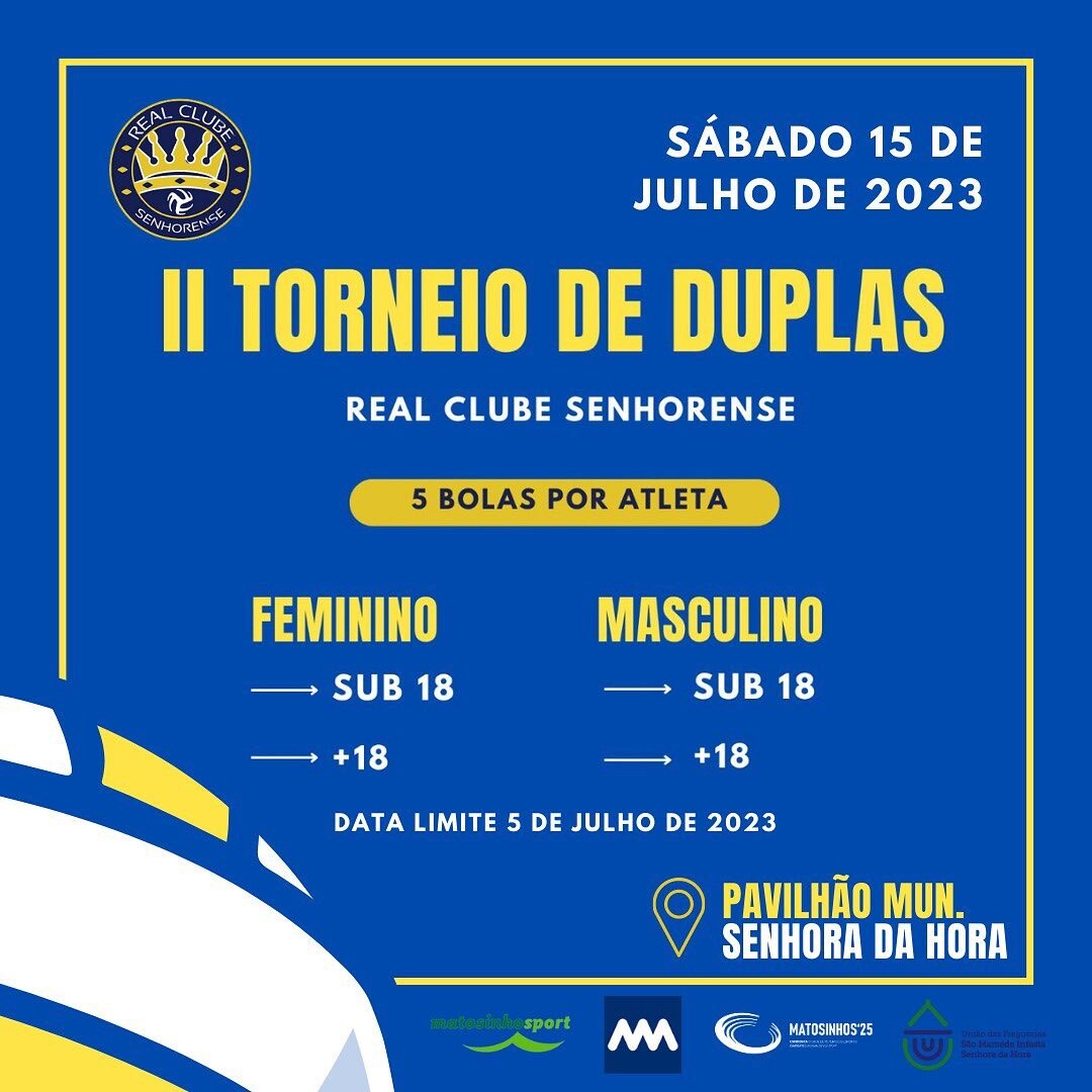 Estão oficialmente abertas as inscrições para o II Torneio de Duplas do Real Clube Senhorense.
