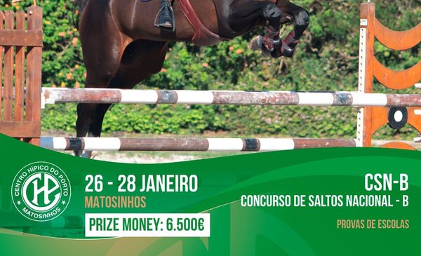 Histórico de EventosHomepage | Em agenda | EventosHomepage | Últimas Notícias | Lista de EventosHomepage | Últimas Notícias | Slider de EventosMatosinhos 2025Newsletter | Listagem de Eventos (notícias) 2 colunas26 a 28 Jan '24Hipismo: Concurso Saltos Nacional - B
