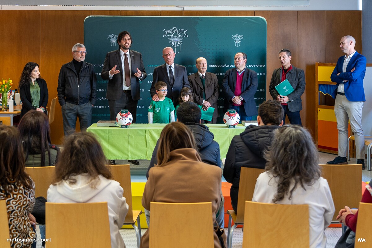 Na cerimónia protocolar de assinatura entre José Neves, Presidente da Associação de Futebol do Porto e Paulo Gaspar, Diretor do Agrupamento de Escolas Irmãos Passos, esteve também o Vereador do Desporto, Vasco Pinho acompanhado por Henrique Calisto, Administrador Executivo da Matosinhos Sport.