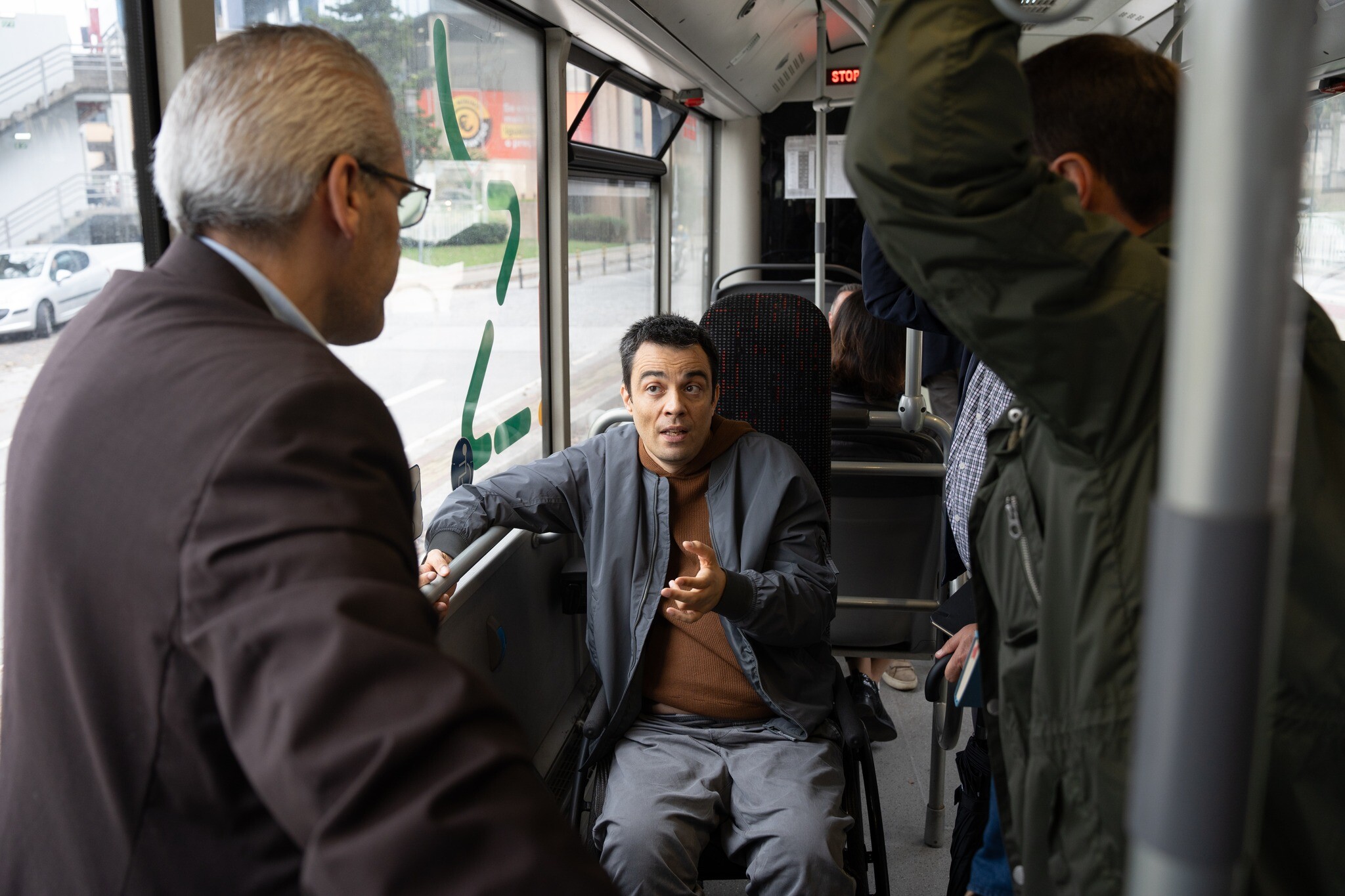O passeio pelo concelho teve início com um trajeto pedonal da Câmara Municipal até à paragem de autocarro de Matosinhos na rua 1º de Maio, seguindo-se uma viagem de autocarro na linha UNIR 104/5001 com paragem na rua João Mendonça, o que permitiu testar a acessibilidade instalada nos equipamentos/autocarros da nova rede UNIR e a qualidade da infraestrutura. Neste âmbito da mobilidade e transportes, a autarquia implementou a recente medida de gratuitidade dos passes municipais do serviço público de transporte de passageiros, que inclui as pessoas com doenças degenerativas de natureza crónica ou com incapacidade permanente, de grau igual ou superior a 60%, residentes em Matosinhos.