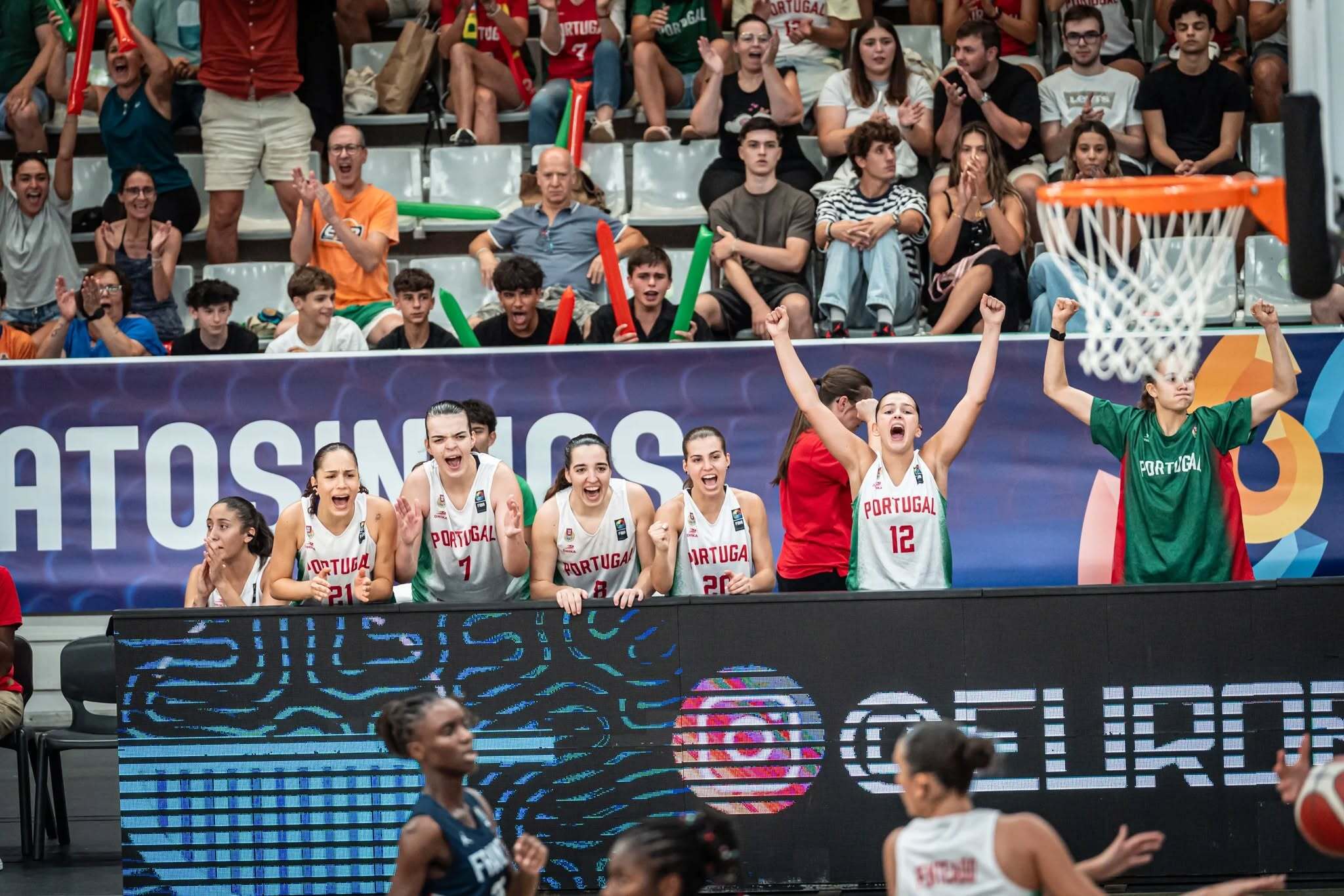 No seu primeiro jogo no EuroBasket feminino, e apesar da boa réplica e do apoio do público, Portugal perdeu contra a poderosa seleção francesa.