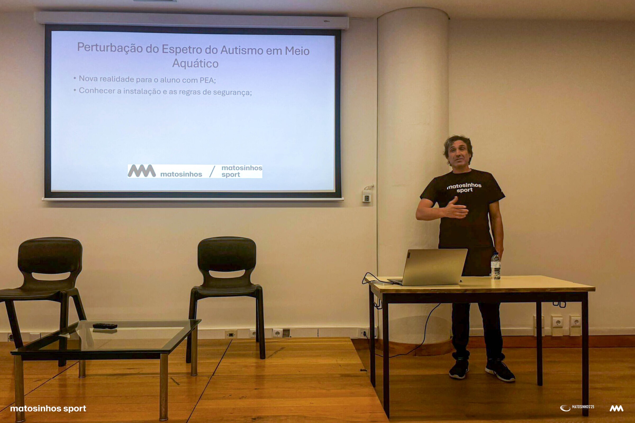 Organizada pela Matosinhos Sport, a sessão contou com a participação de 42 pessoas, tendo como objetivo sensibilizar e apoiar pais e professores na compreensão desta problemática, promovendo assim a integração das crianças com espectro do autismo nas aulas de natação e em atividades em grupo.