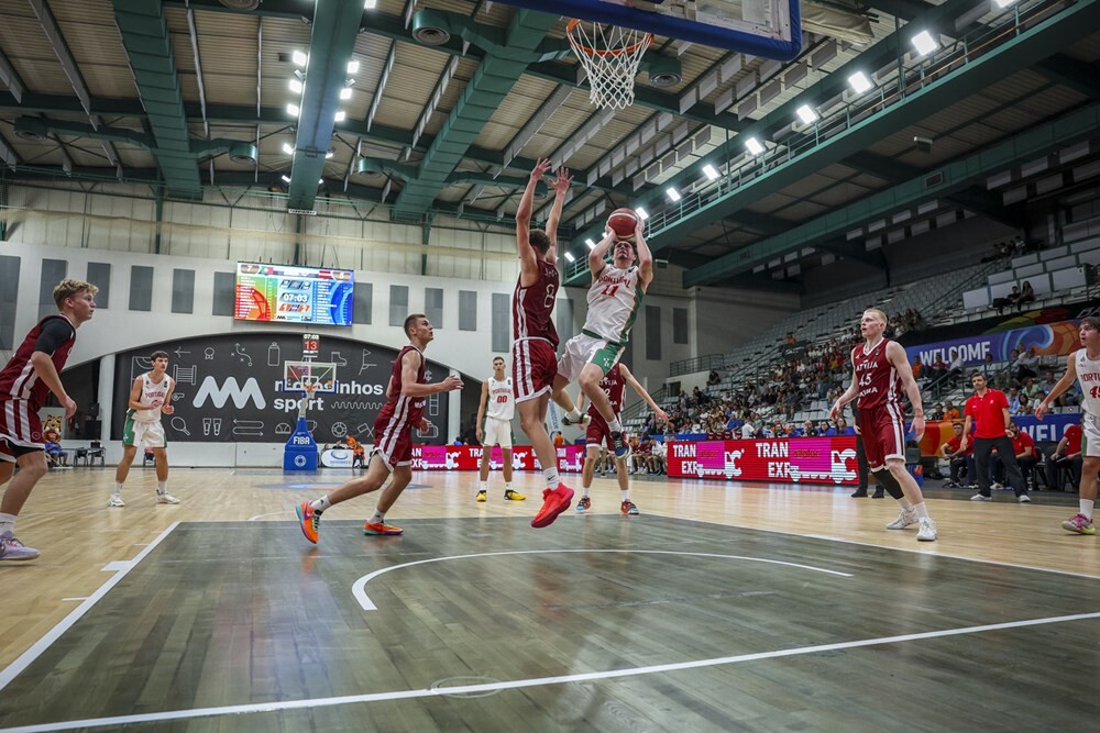 Portugal entrou forte no 𝗘𝘂𝗿𝗼𝗽𝗲𝘂 𝗱𝗲 𝗕𝗮𝘀𝗾𝘂𝗲𝘁𝗲𝗯𝗼𝗹 𝘀𝘂𝗯𝟭𝟴 𝗺𝗮𝘀𝗰𝘂𝗹𝗶𝗻𝗼𝘀 em 𝗠𝗮𝘁𝗼𝘀𝗶𝗻𝗵𝗼𝘀, mas num jogo muito equilibrado a seleção da Letónia levou de vencida a seleção das Quinas por 75x73. Entre as mais de 2000 pessoas que estiveram apoiar a seleção nacional no Centro de Desportos e Congressos de Matosinhos esteve a presidente da Autarquia, Luísa Salgueiro, o vice-presidente, Carlos Mouta, o vereador do Desporto, Nuno Matos e o administrador executivo da Matosinhos Sport, Henrique Calisto.