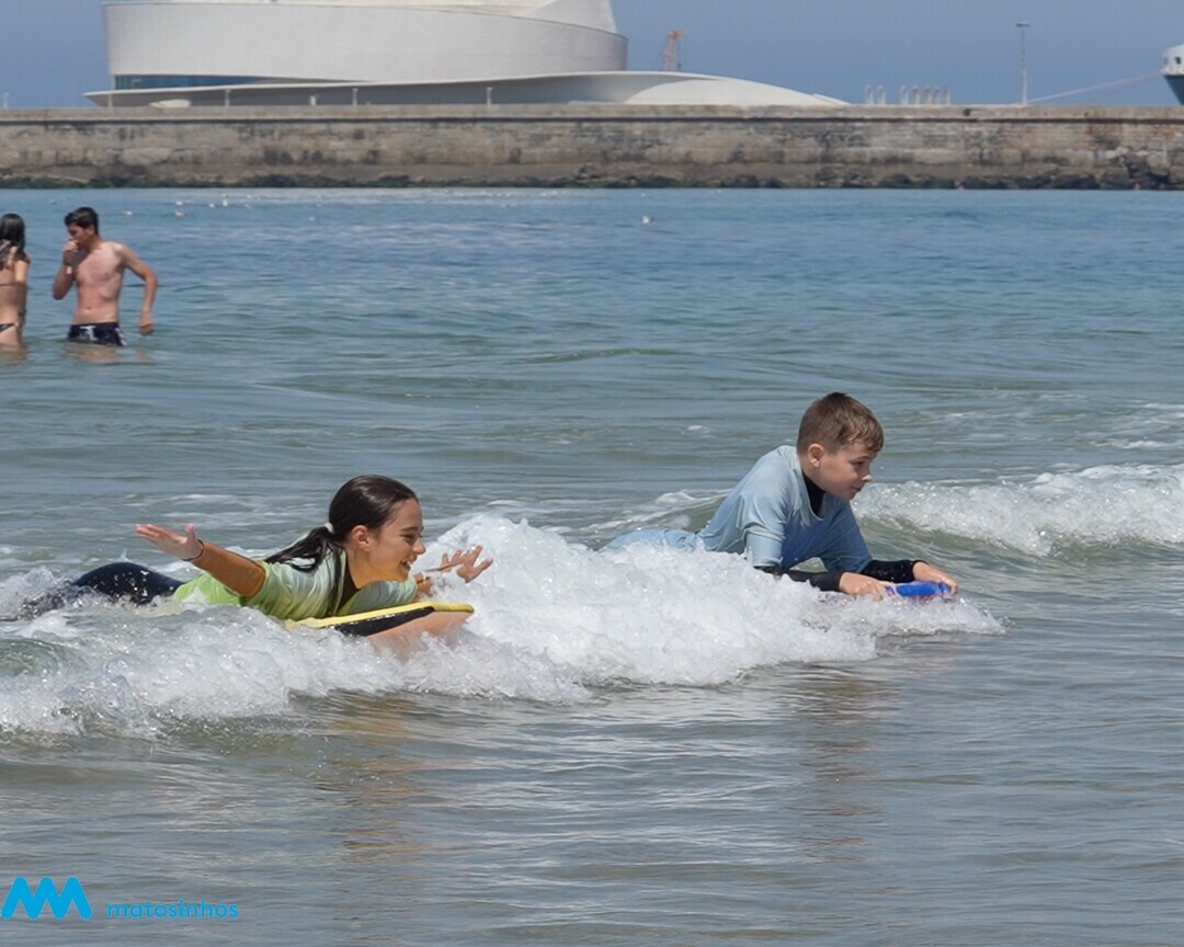Na manhã de sábado, 24 alunos do 4.º ano dos Agrupamentos de Escolas de Matosinhos e Professor Óscar Lopes participaram com entusiasmo na primeira edição do Campeonato AEC de Surf e Bodyboard.